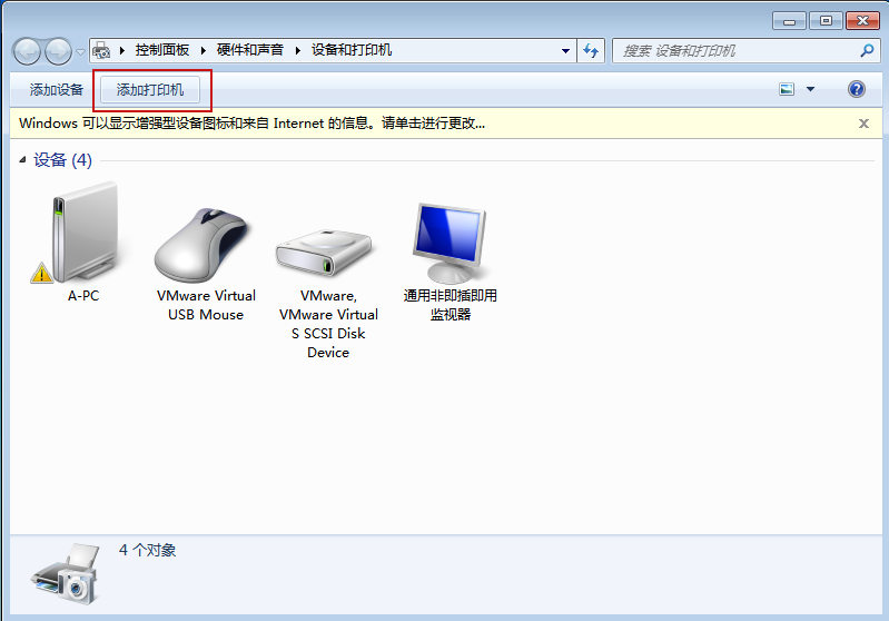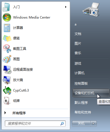 第一步,点击开始菜单,找到设备和打印机,点击这个按钮。