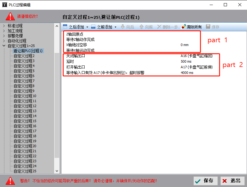 因此,需要把上图避让前PLC拆开成两部分,part 1 写入避让前PLC,part 2写入避让后PLC。