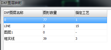 3、在DXF图层映射中,可以配置具体的映射情况。指定工艺即对应CypCut里的16个图层。