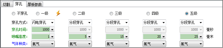 功能说明:可以设置五级穿孔,一级穿孔可以使用闪电穿孔工艺。