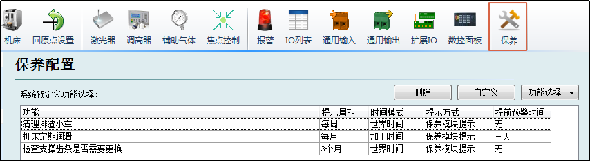 功能说明:设置保养信息,定期对机床进行保养,保证机床的正常运行。