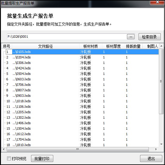 功能说明:此功能可以快速的提取指定文件夹路径下加工文件的生产信息,搭配使用扫码读图功能,可以实现简单的加工管理。